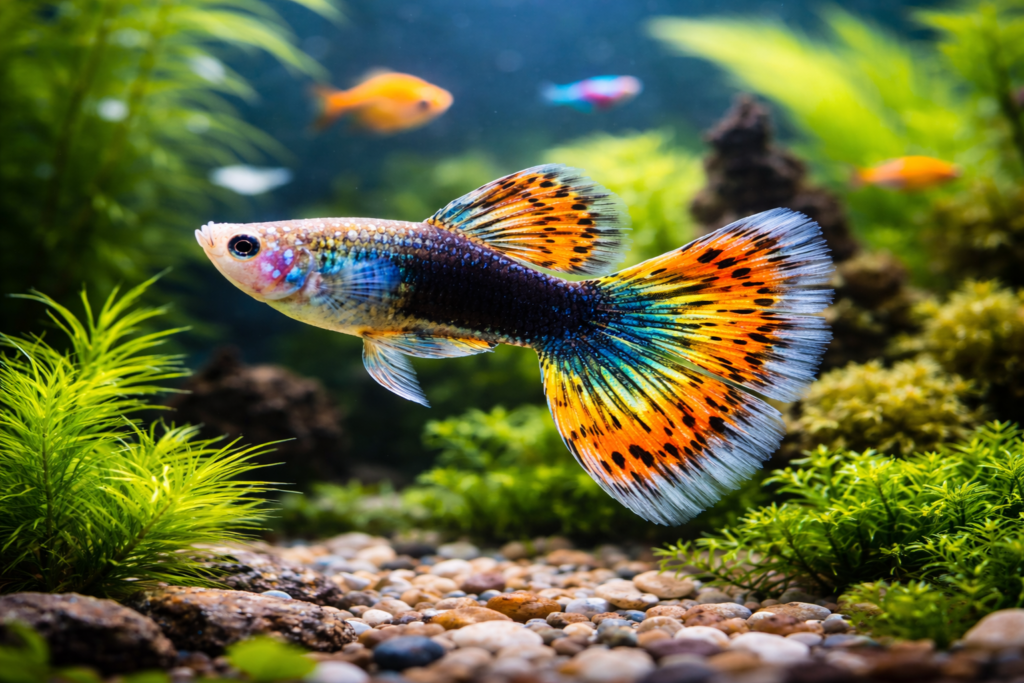 Guppy is a small, colorful freshwater fish, known for its lively behavior, hardiness, and popularity in home aquariums. It is one of the most widely bred and kept aquarium fish due to its adaptability, ease of care, and attractive appearance.